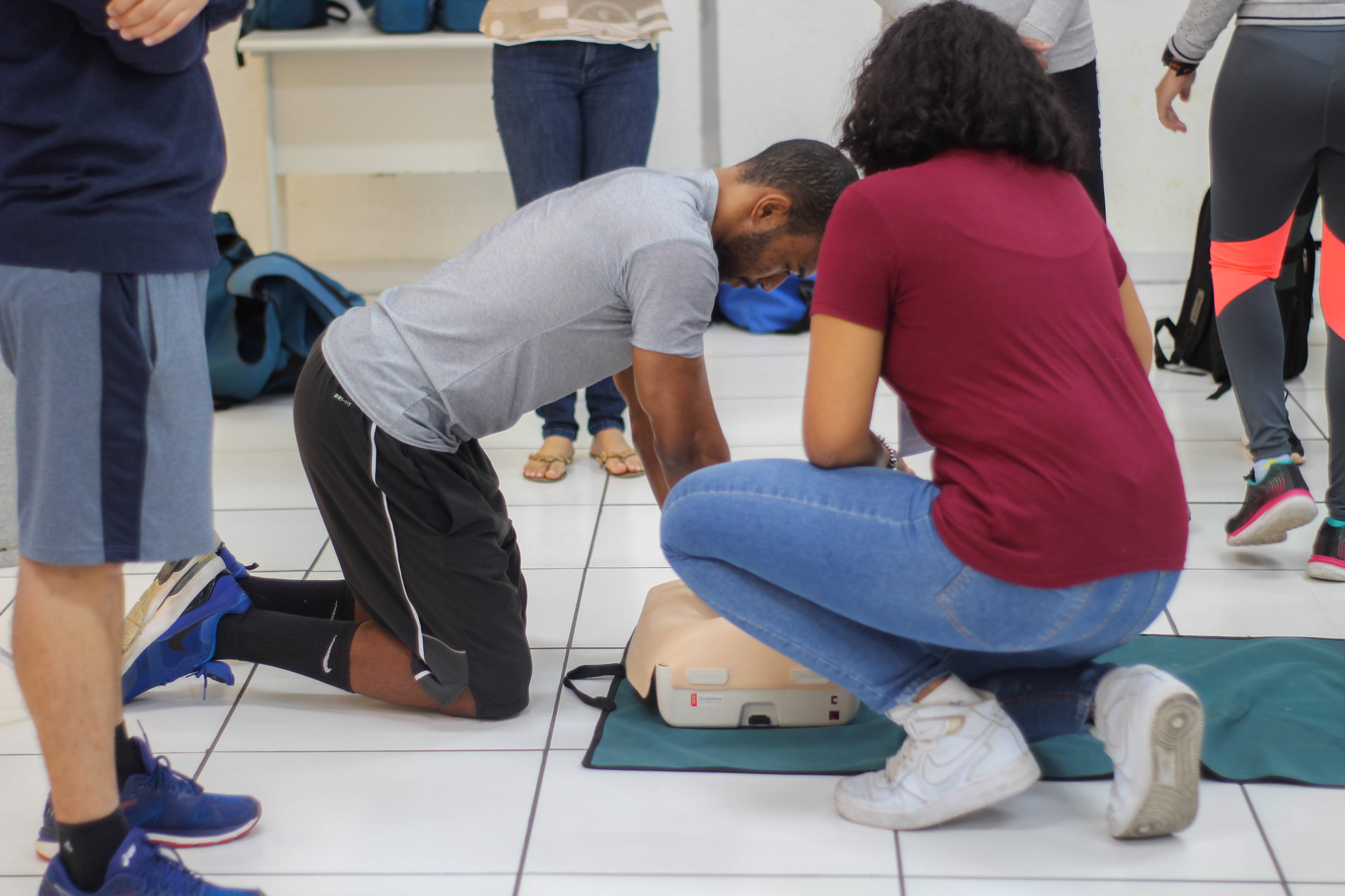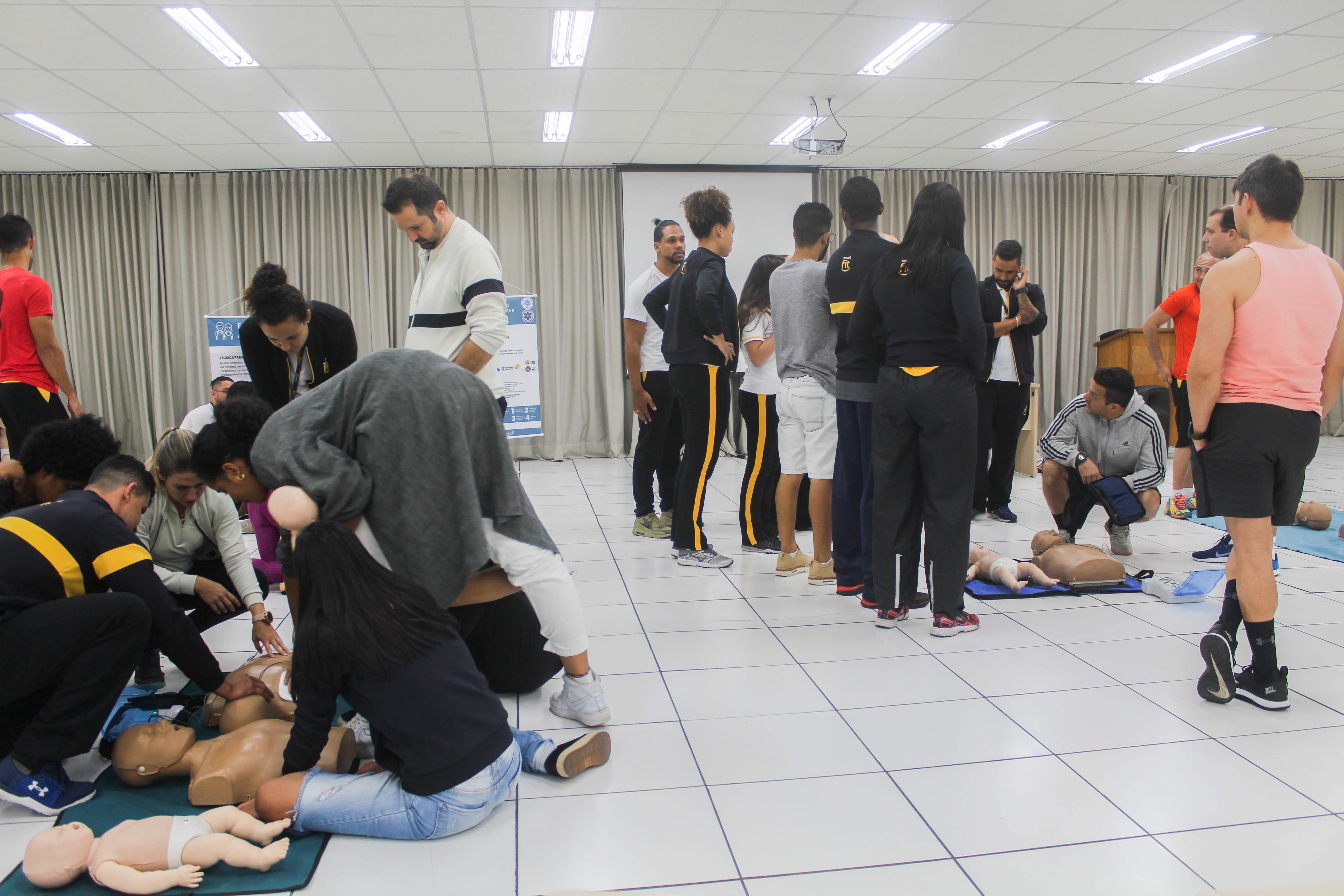 Neste projeto de extensão chamado "Malhando Pela Vida", os instrutores/educadores da rede estão sendo preparados para uma aula coletiva diferente, na qual os alunos das academias vão fazer um treinamento por ciclos de repetição, das manobras de Ressuscitação Cardíaca.