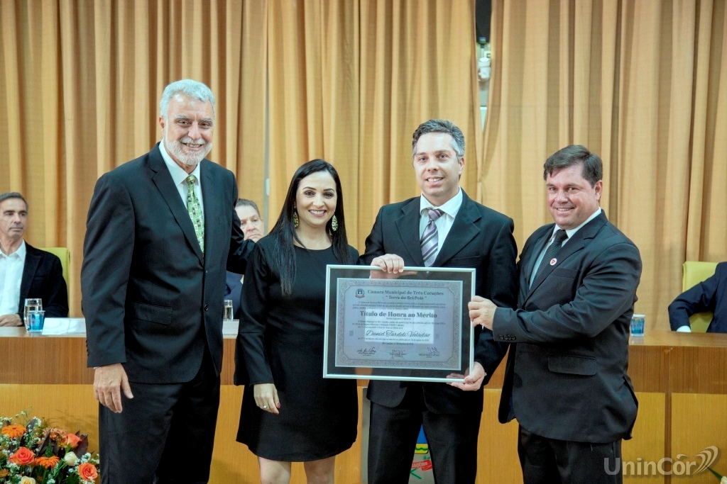 O Diretor Geral da UninCor, professor Leandro Rodrigues, recebeu a Medalha do Mérito Legislativo Itamar Augusto Cautiero Franco; o Coordenador do Curso de Direito da UninCor, professor Leiner Marchetti Pereira, recebeu o título de Cidadão Tricordiano; e o professor Daniel Tardeli Valadão, também do Curso de Direito da UninCor, foi homenageado com o título de Honra ao Mérito pela Câmara Municipal.