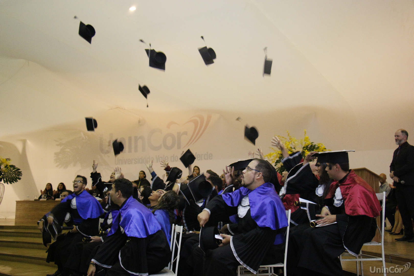 - dia 15, às 10h, colaram grau 63 alunos dos cursos de Odontologia e Psicologia. A Cerimônia foi presidida pelo Diretor Geral da UninCor, Professor Leandro Rodrigues de Souza. Às 14h, colaram grau 36 alunos dos cursos EAD de Administração, Música e Pedagogia. A Cerimônia foi presidida pelo Diretor Executivo da UninCor, Professor Túlio Marcos Romano e às 17h, colaram grau 47 alunos dos cursos de Estética e Cosmética, Educação Física e Pedagogia. A Cerimônia foi presidida pelo Diretor Geral da UninCor, Professor Leandro Rodrigues de Souza.
